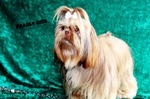 Die Haare auf dem Nasenrücken wachsen so das ein chrysantemartiger Eindruck entsteht.Die Halslinie ist geschwungen und ausreichend lang,damit der Kopf stolz getragen wird.Die Läufe sind kurz und gut bemuskelt,